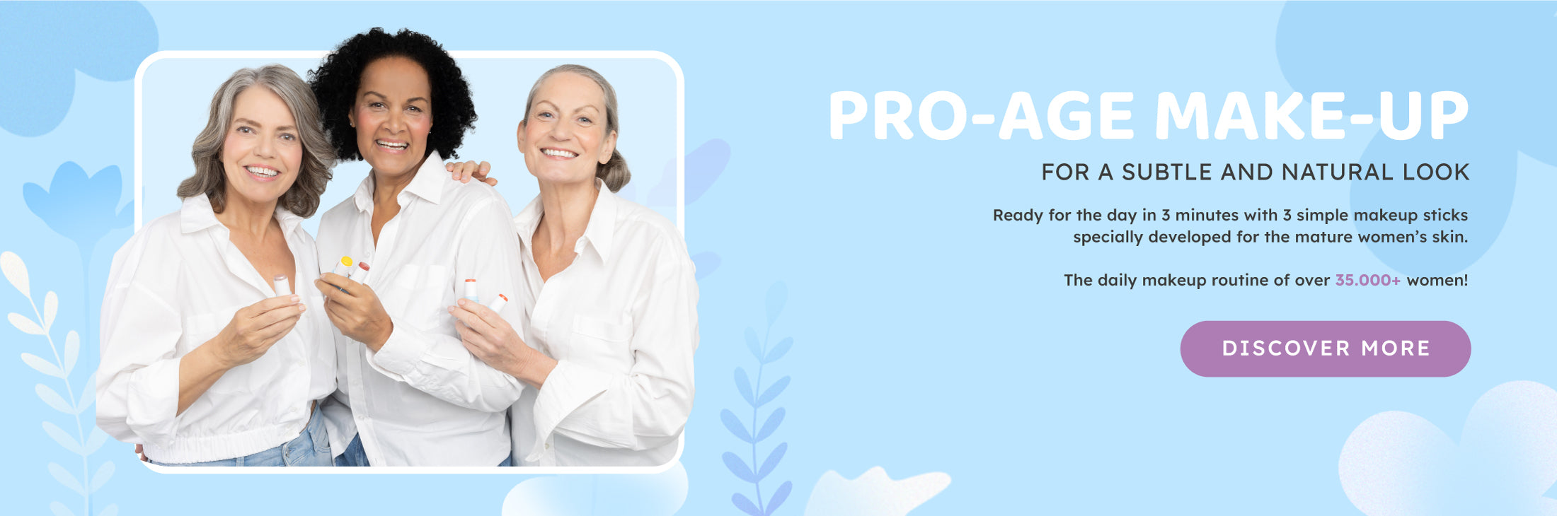Our mission is to give 45+ women more self-confidence by making you shine naturally within 3 minutes. We do this with multifunctional make-up products that are made on a cream base.